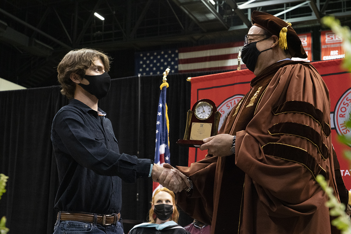 Every Spring at the Honors Convocation, the President announces the recipients of the Man and Woman of the year. The nominations come from Faculty and Staff and is a recognition of their commitment to their alma mater and community. The ceremony was able to be held in person at the Gallego Center with proper social distancing and Covid precautions in place.